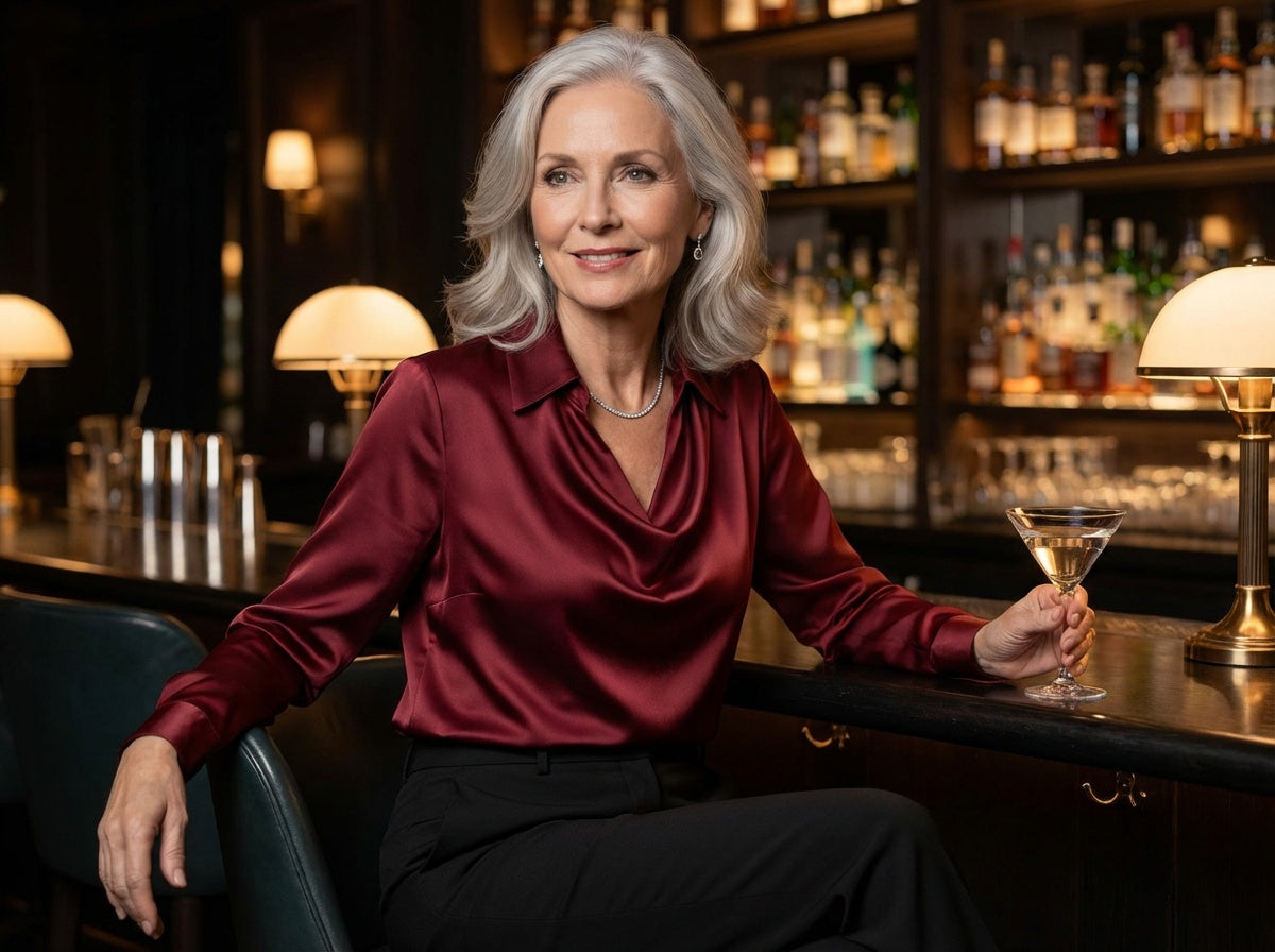 Rose | Women’s Draped Neck Long Sleeve Satin Blouses